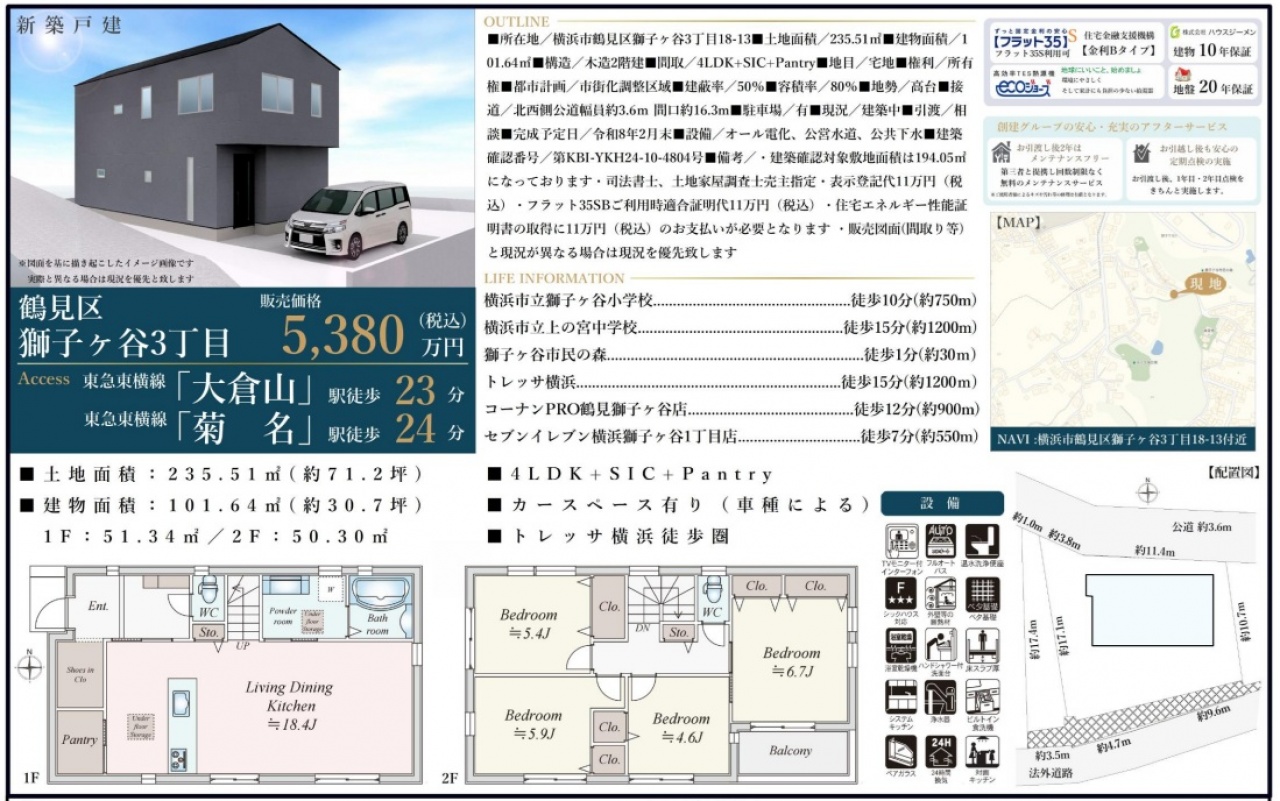 東京都 不動産 > 横浜市鶴見区 獅子ケ谷3丁目 新築一戸建て