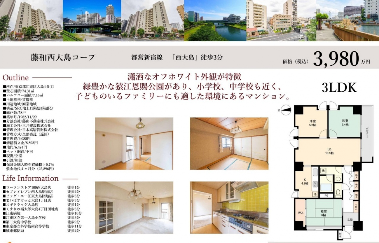 東京都 不動産 > 藤和西大島コープ