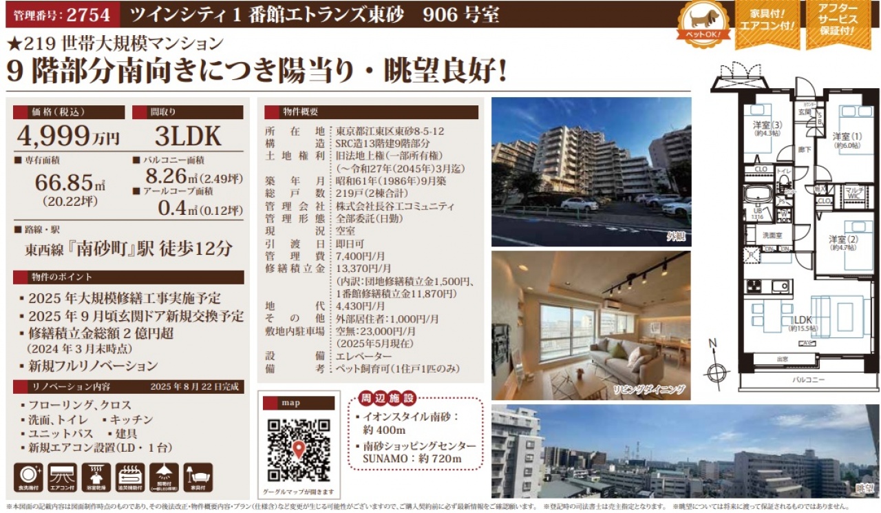 東京都 不動産 > ツインシティ1番館エトランズ東砂