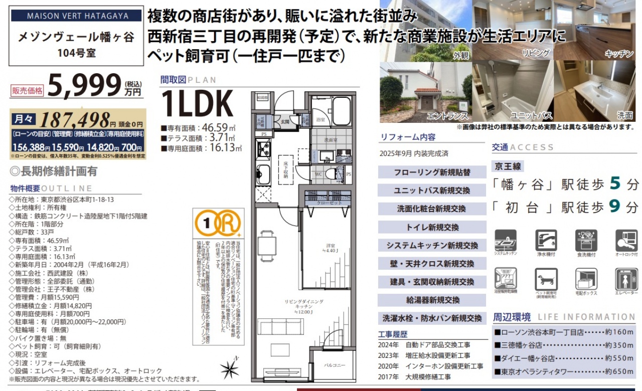 物件情報と現況に差異がある場合、現況を優先します。 掲載物件は売却済み、売却中止、価格変更となる場合がありますので、予めご了承ください。 仲介物件には所定の仲介手数料(消費税含む)が必要です。