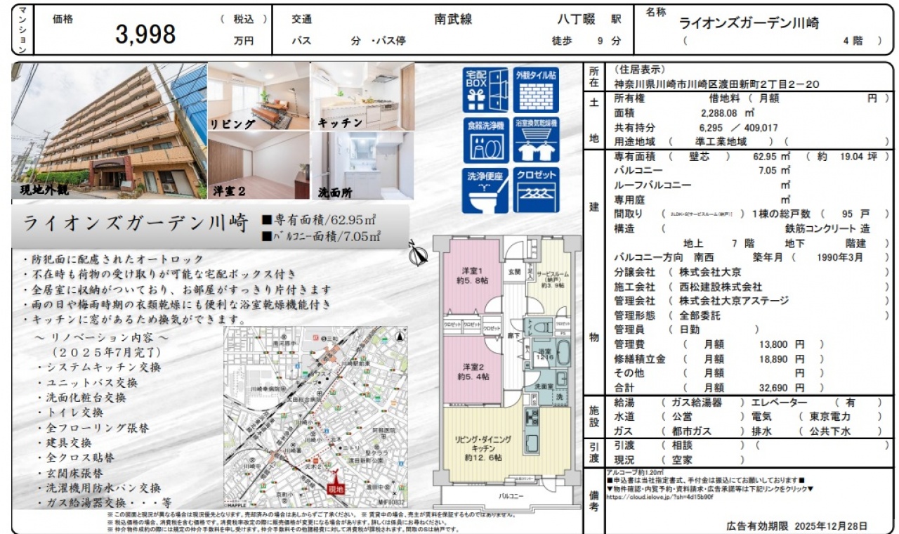 物件情報と現況に差異がある場合、現況を優先します。 掲載物件は売却済み、売却中止、価格変更となる場合がありますので、予めご了承ください。 仲介物件には所定の仲介手数料(消費税含む)が必要です。