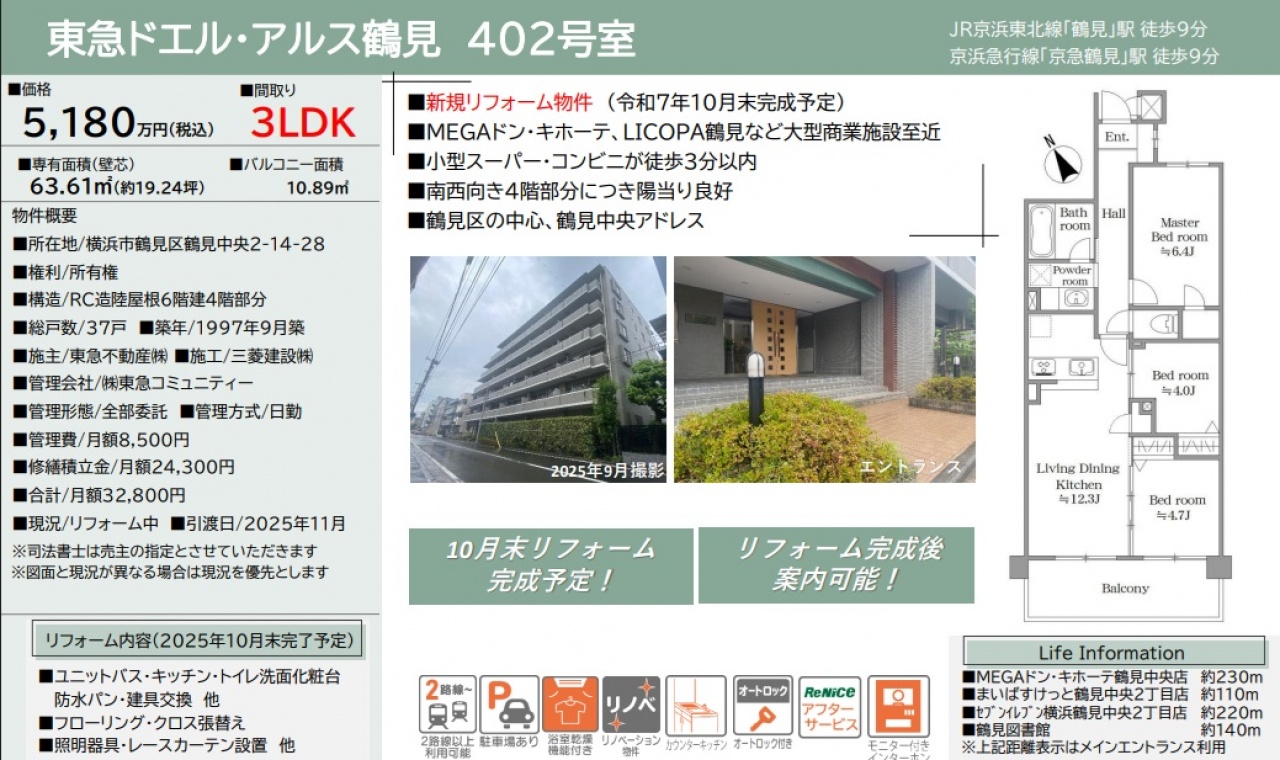 物件情報と現況に差異がある場合、現況を優先します。 掲載物件は売却済み、売却中止、価格変更となる場合がありますので、予めご了承ください。 仲介物件には所定の仲介手数料(消費税含む)が必要です。