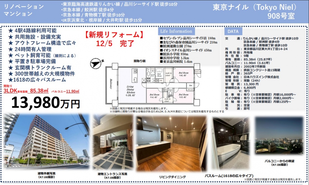 物件情報と現況に差異がある場合、現況を優先します。 掲載物件は売却済み、売却中止、価格変更となる場合がありますので、予めご了承ください。 仲介物件には所定の仲介手数料(消費税含む)が必要です。