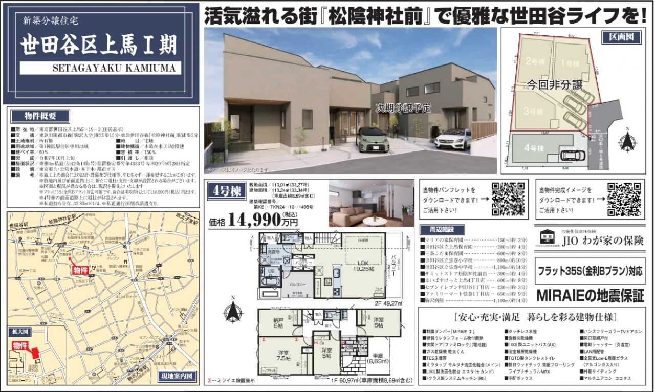 東京都 不動産 > 世田谷区 上馬5丁目 新築一戸建て