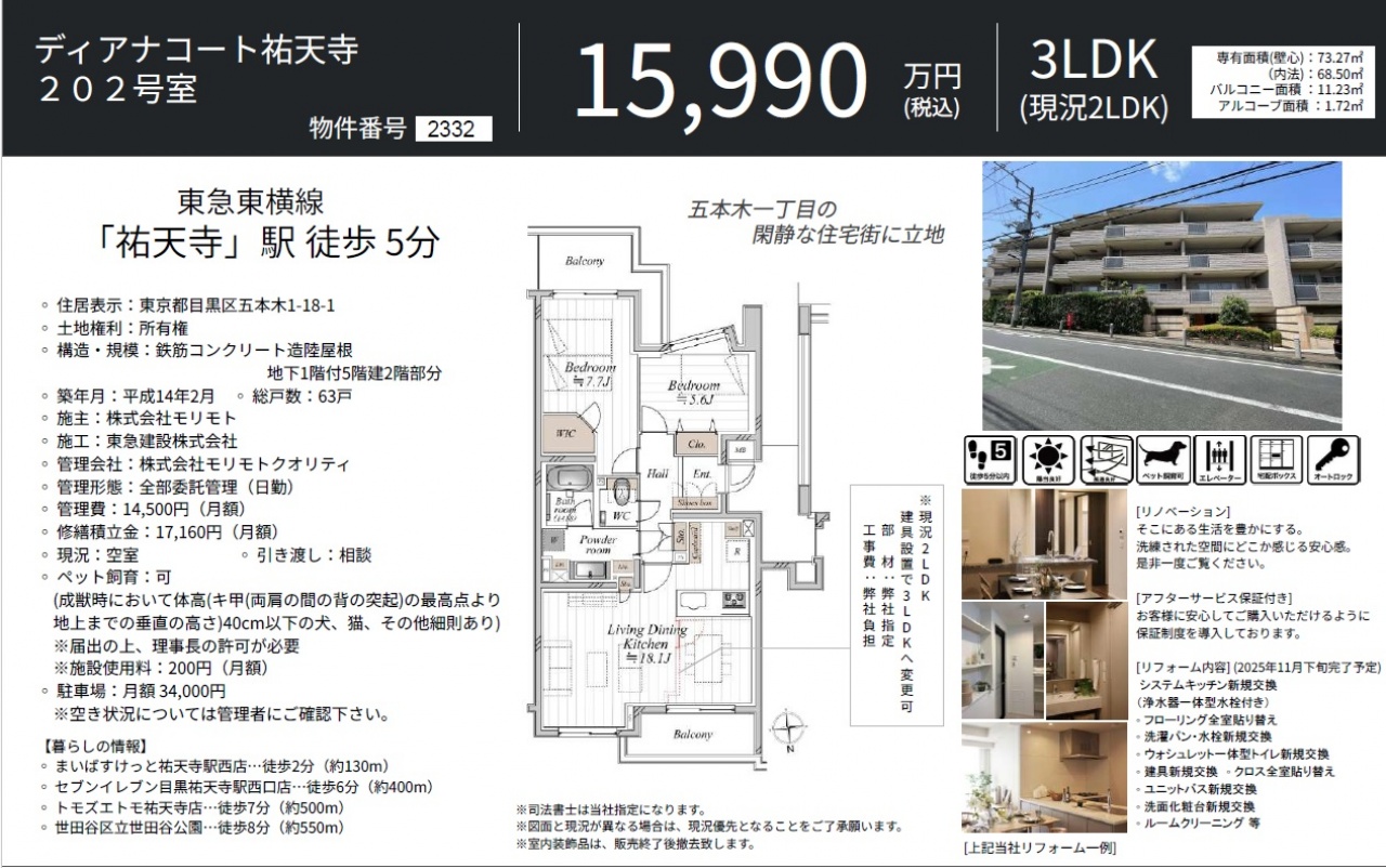 物件情報と現況に差異がある場合、現況を優先します。 掲載物件は売却済み、売却中止、価格変更となる場合がありますので、予めご了承ください。 仲介物件には所定の仲介手数料(消費税含む)が必要です。