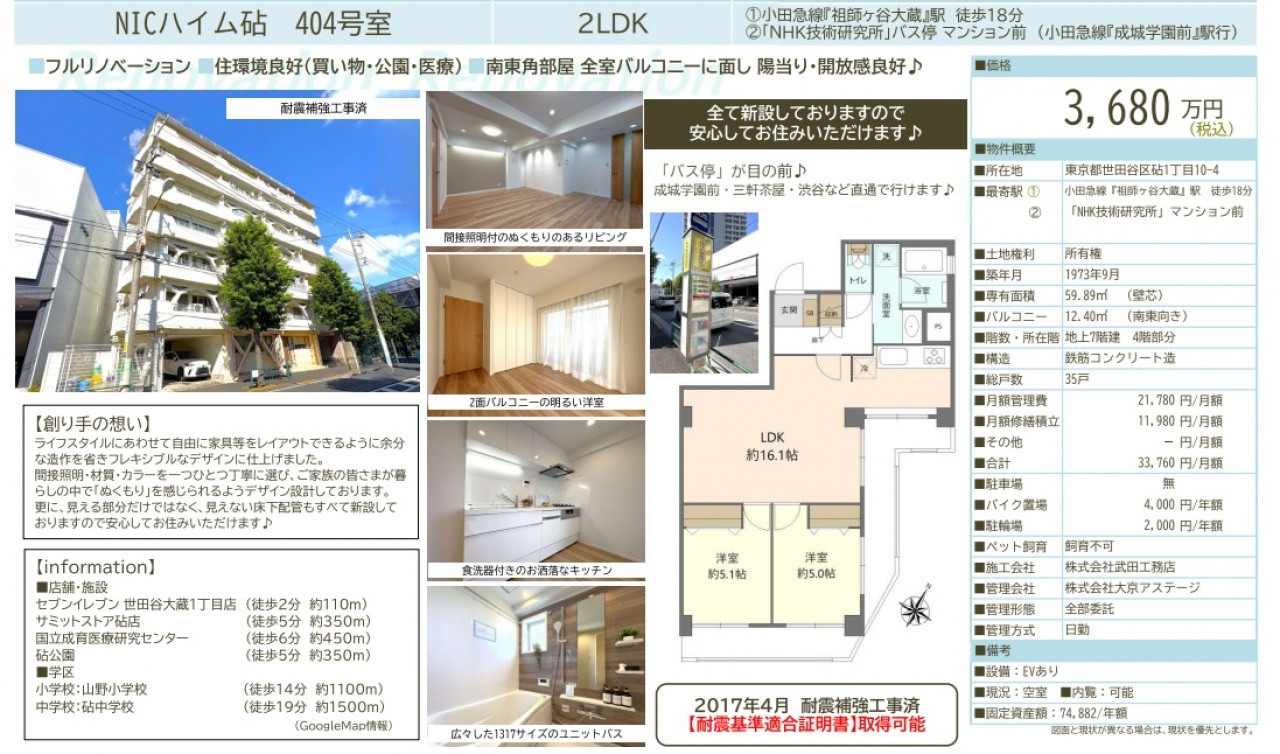 物件情報と現況に差異がある場合、現況を優先します。 掲載物件は売却済み、売却中止、価格変更となる場合がありますので、予めご了承ください。 仲介物件には所定の仲介手数料(消費税含む)が必要です。