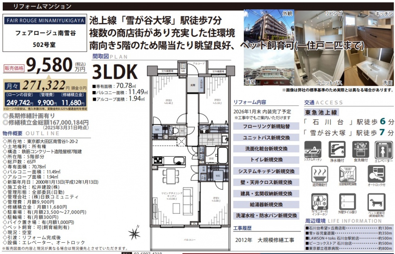 物件情報と現況に差異がある場合、現況を優先します。 掲載物件は売却済み、売却中止、価格変更となる場合がありますので、予めご了承ください。 仲介物件には所定の仲介手数料(消費税含む)が必要です。