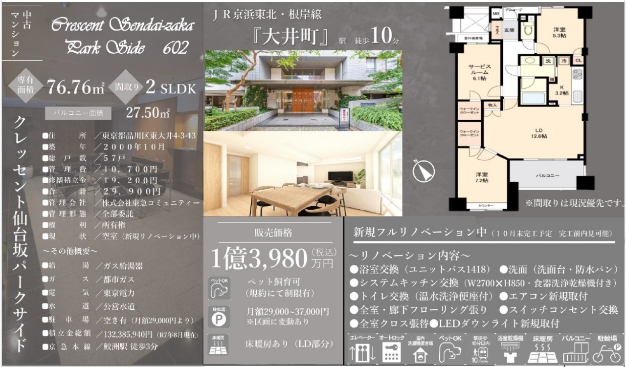 物件情報と現況に差異がある場合、現況を優先します。 掲載物件は売却済み、売却中止、価格変更となる場合がありますので、予めご了承ください。 仲介物件には所定の仲介手数料(消費税含む)が必要です。
