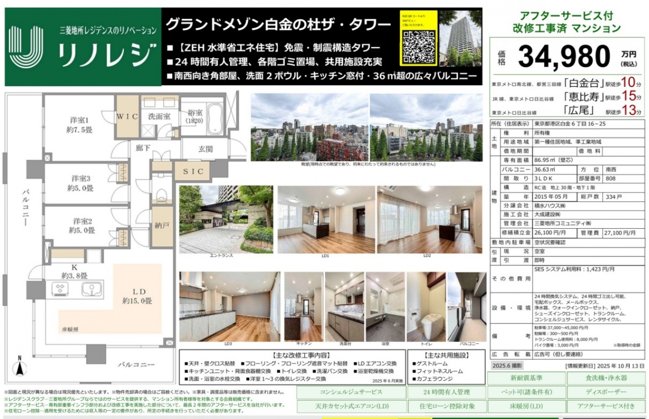 東京都 不動産 > グランドメゾン白金の杜ザ・タワー