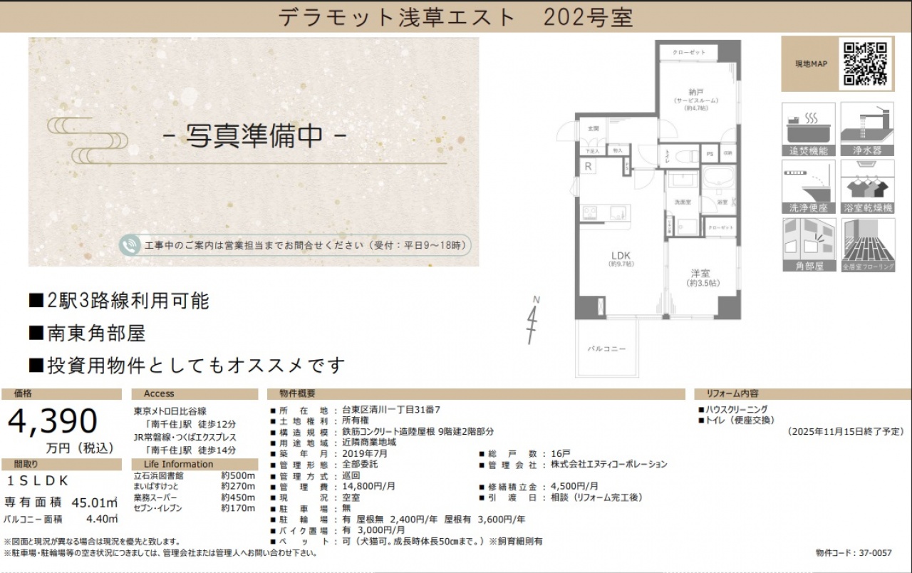物件情報と現況に差異がある場合、現況を優先します。 掲載物件は売却済み、売却中止、価格変更となる場合がありますので、予めご了承ください。 仲介物件には所定の仲介手数料(消費税含む)が必要です。