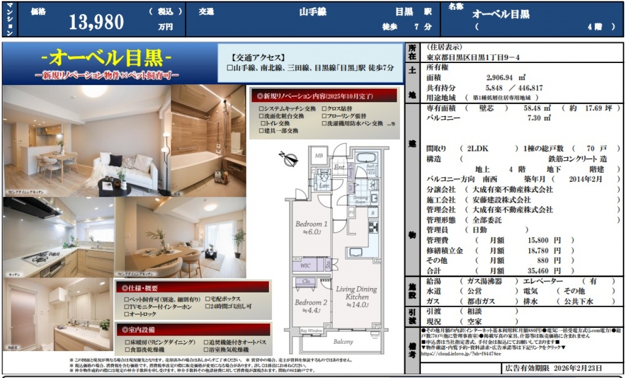 物件情報と現況に差異がある場合、現況を優先します。 掲載物件は売却済み、売却中止、価格変更となる場合がありますので、予めご了承ください。 仲介物件には所定の仲介手数料(消費税含む)が必要です。