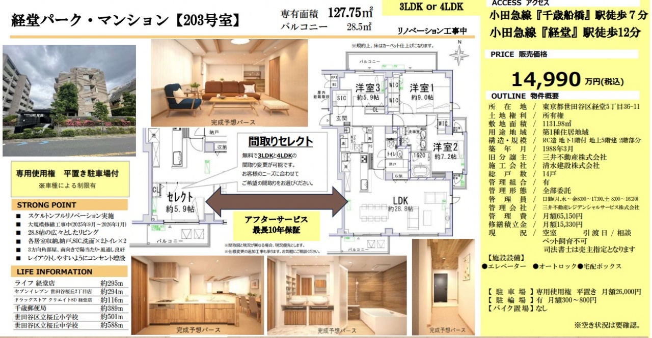東京都 不動産 > 経堂パーク・マンション 平置P付