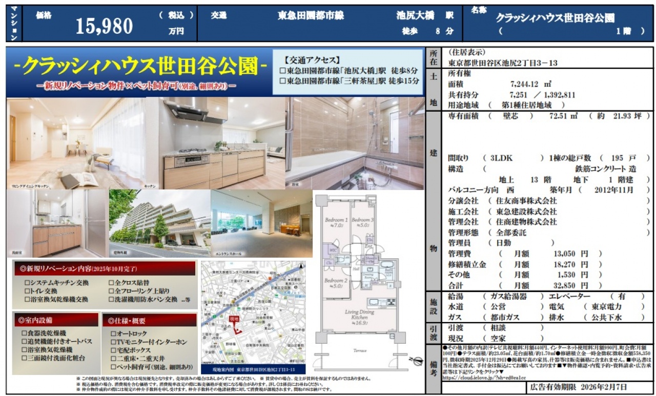 物件情報と現況に差異がある場合、現況を優先します。 掲載物件は売却済み、売却中止、価格変更となる場合がありますので、予めご了承ください。 仲介物件には所定の仲介手数料(消費税含む)が必要です。