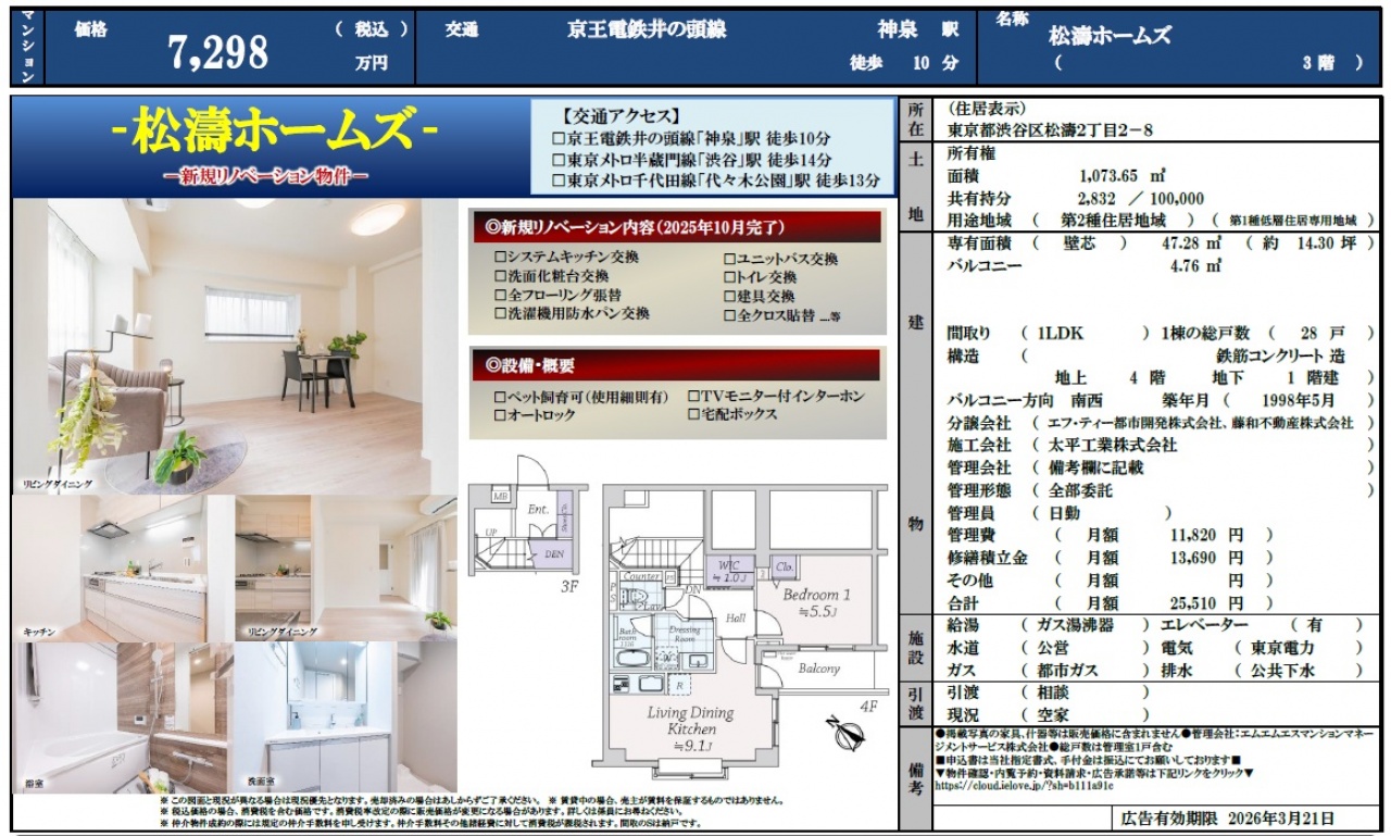 物件情報と現況に差異がある場合、現況を優先します。 掲載物件は売却済み、売却中止、価格変更となる場合がありますので、予めご了承ください。 仲介物件には所定の仲介手数料(消費税含む)が必要です。