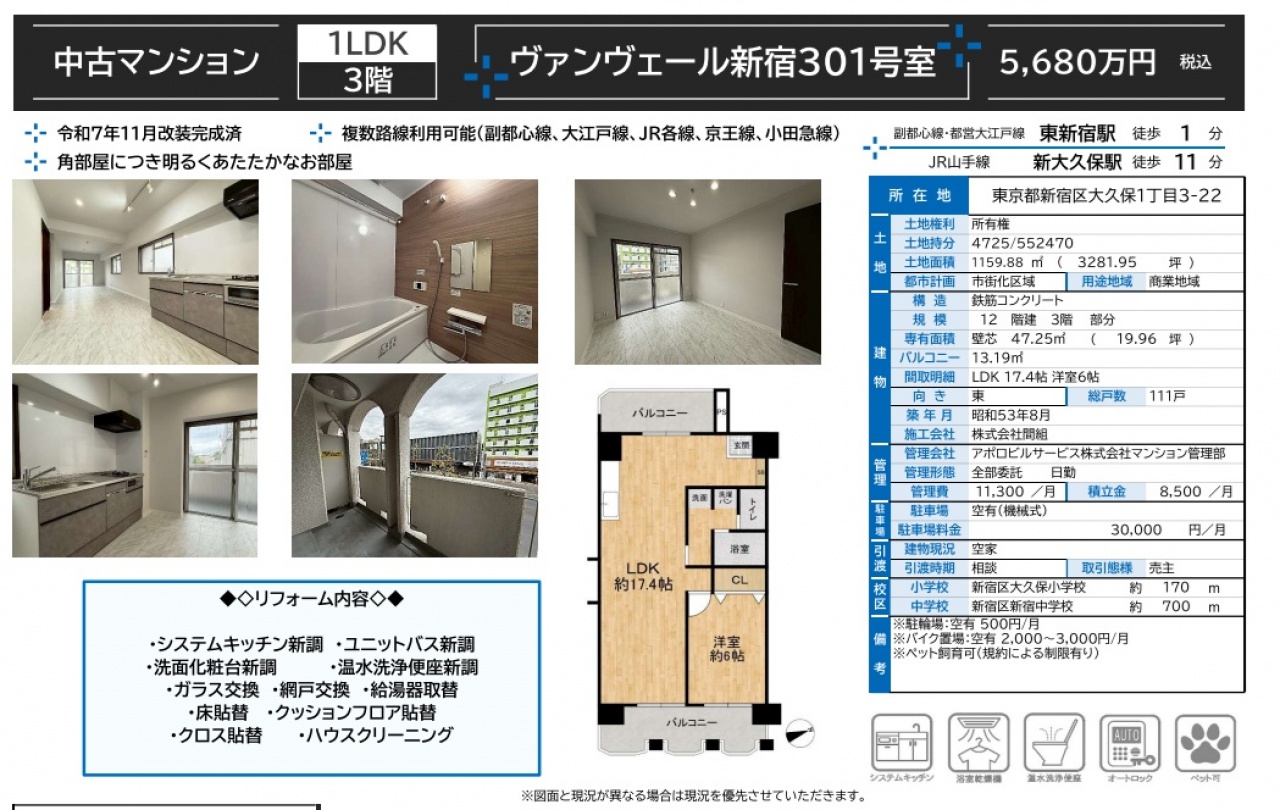 物件情報と現況に差異がある場合、現況を優先します。 掲載物件は売却済み、売却中止、価格変更となる場合がありますので、予めご了承ください。 仲介物件には所定の仲介手数料(消費税含む)が必要です。