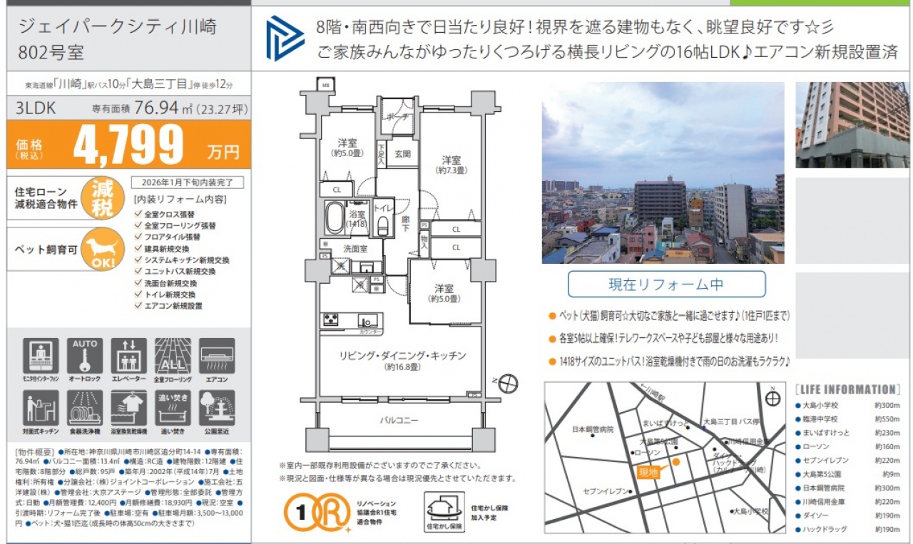 物件情報と現況に差異がある場合、現況を優先します。 掲載物件は売却済み、売却中止、価格変更となる場合がありますので、予めご了承ください。 仲介物件には所定の仲介手数料(消費税含む)が必要です。