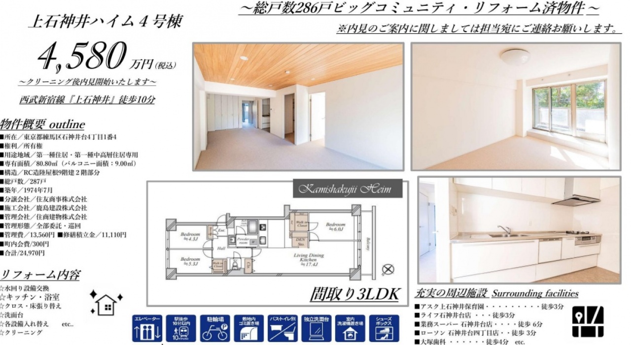 物件情報と現況に差異がある場合、現況を優先します。 掲載物件は売却済み、売却中止、価格変更となる場合がありますので、予めご了承ください。 仲介物件には所定の仲介手数料(消費税含む)が必要です。