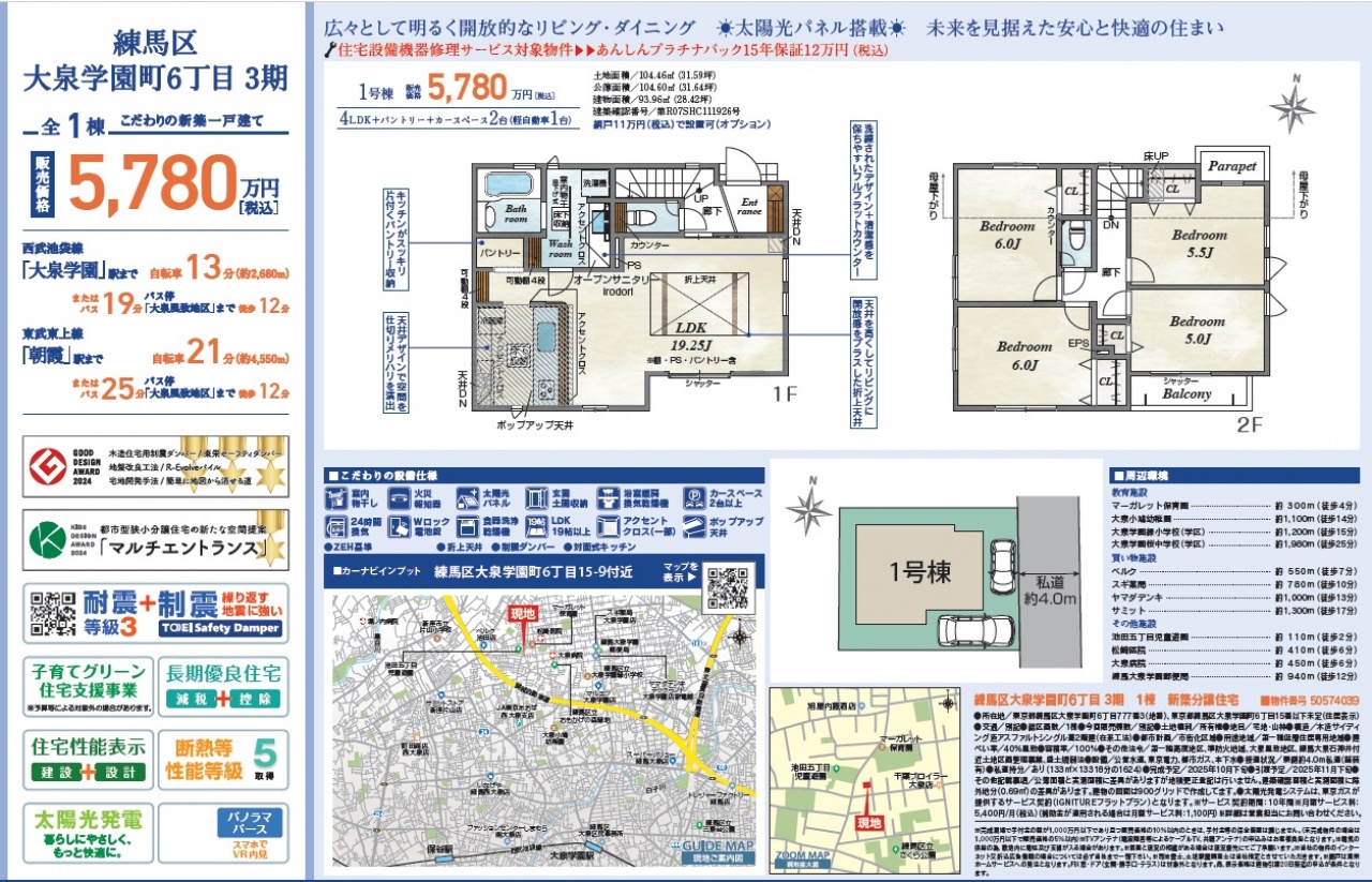 東京都 不動産 > 練馬区 大泉学園町6丁目 新築一戸建て