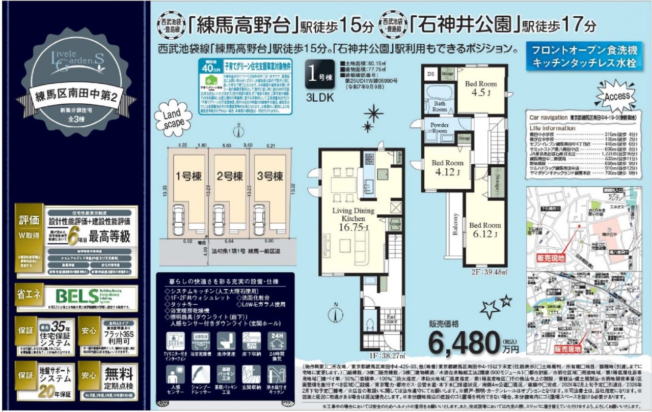 東京都 不動産 > 練馬区 南田中4丁目 新築一戸建て