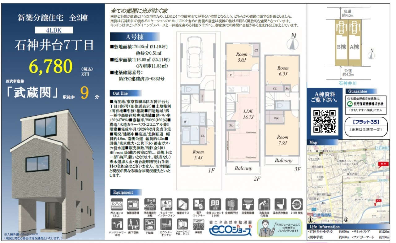 建物面積 116.08m2(35.11坪) 土地面積 70.05m2(21.19坪)