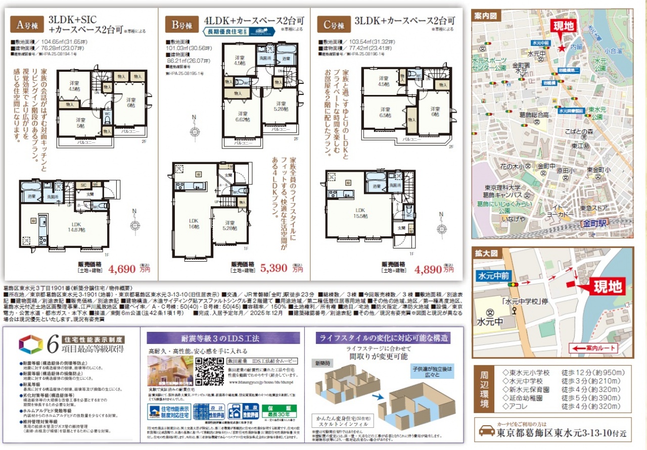 葛飾区 東水元3丁目 新築一戸建ての物件概要