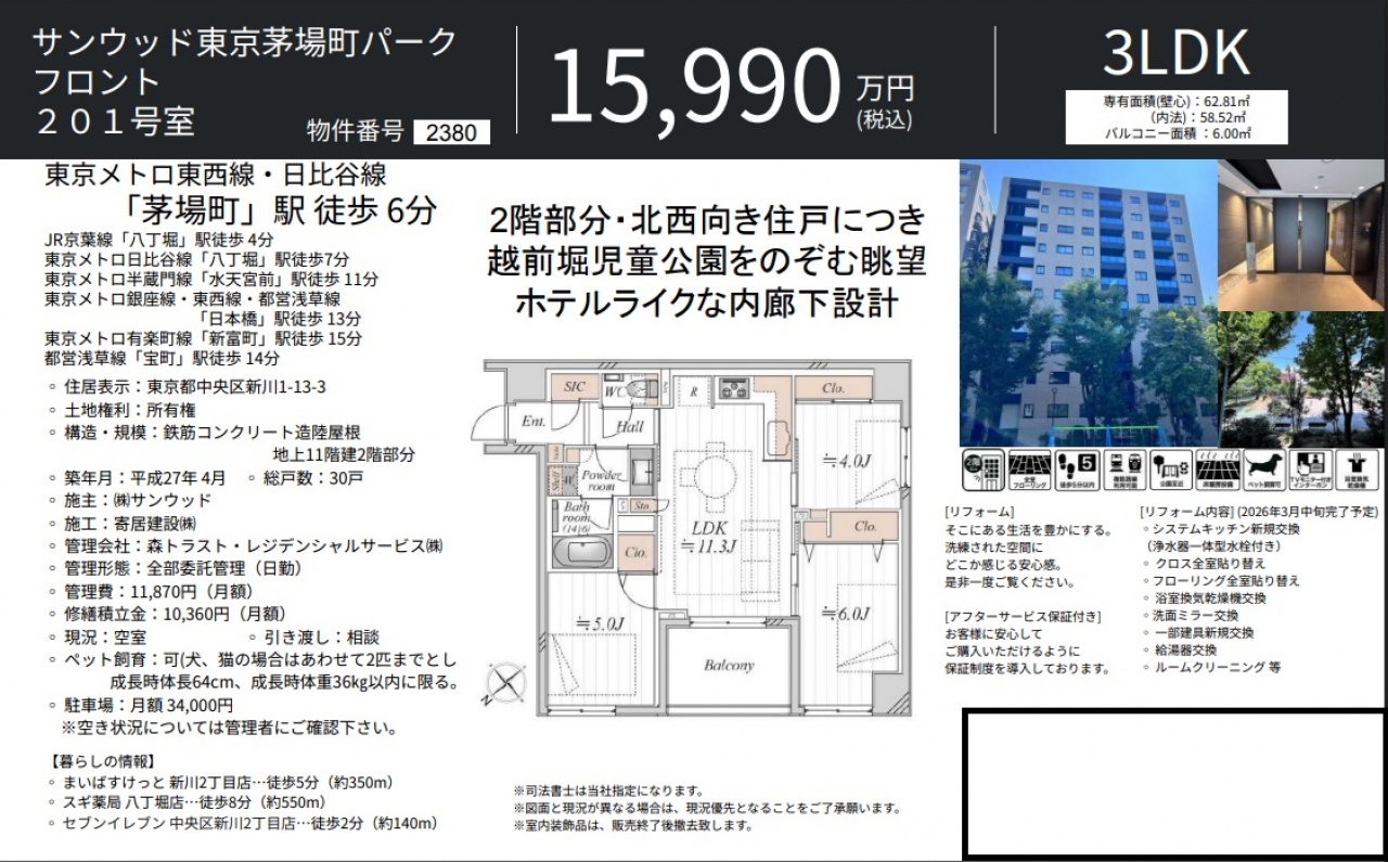 東京都 不動産 > サンウッド東京茅場町パークフロント
