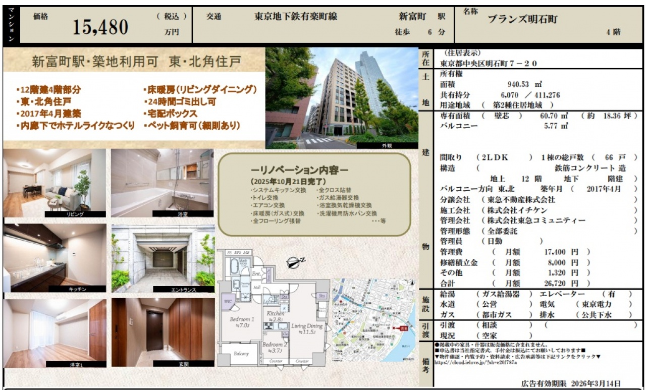 東京都 不動産 > ブランズ明石町