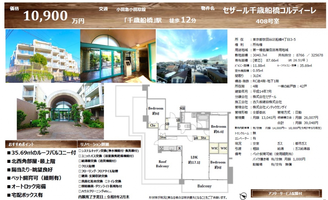 東京都 不動産 > セザール千歳船橋コルティーレ