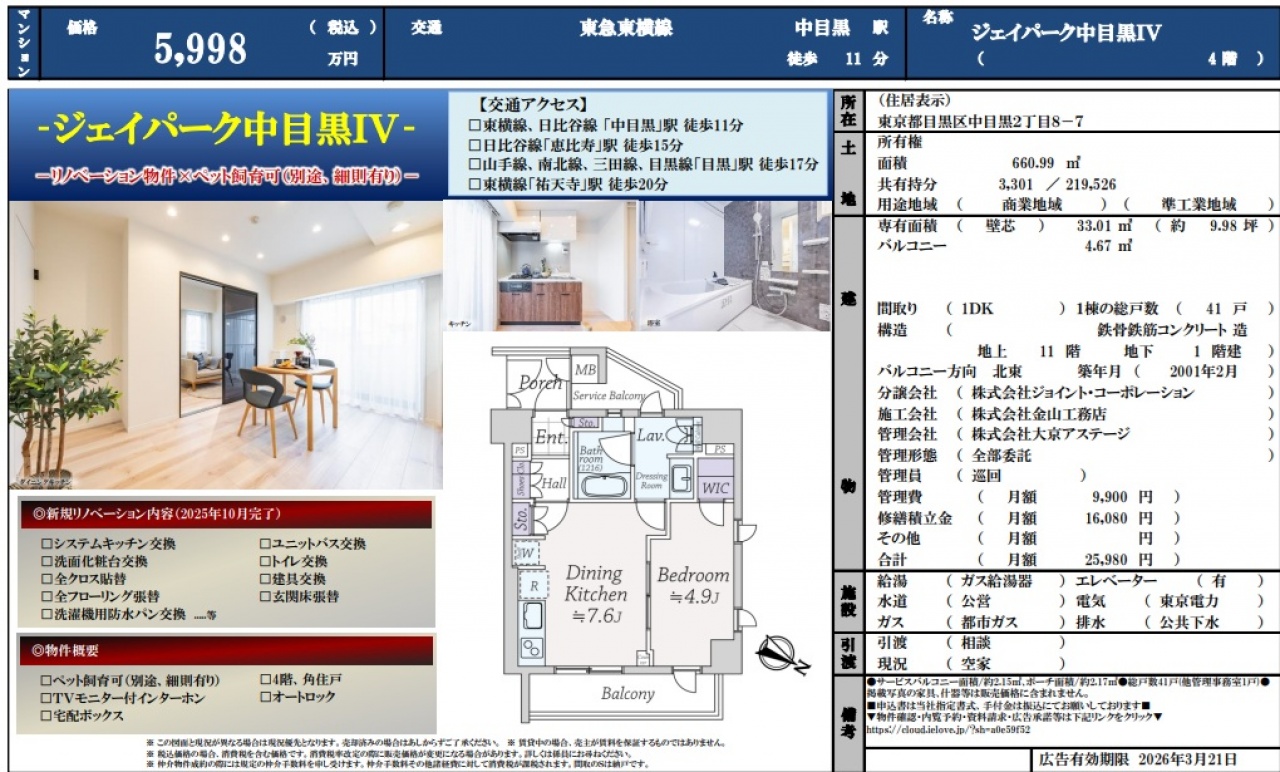 物件情報と現況に差異がある場合、現況を優先します。 掲載物件は売却済み、売却中止、価格変更となる場合がありますので、予めご了承ください。 仲介物件には所定の仲介手数料(消費税含む)が必要です。