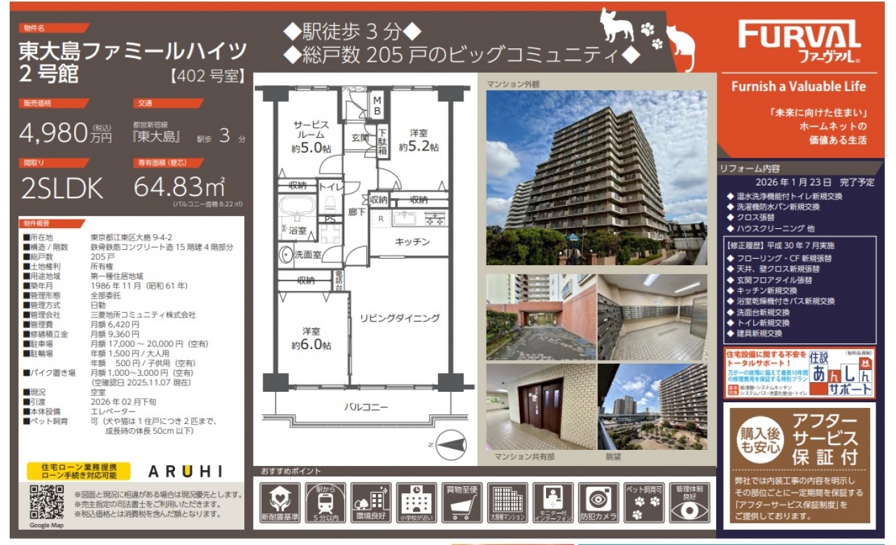 東京都 不動産 > 東大島ファミールハイツ2号館