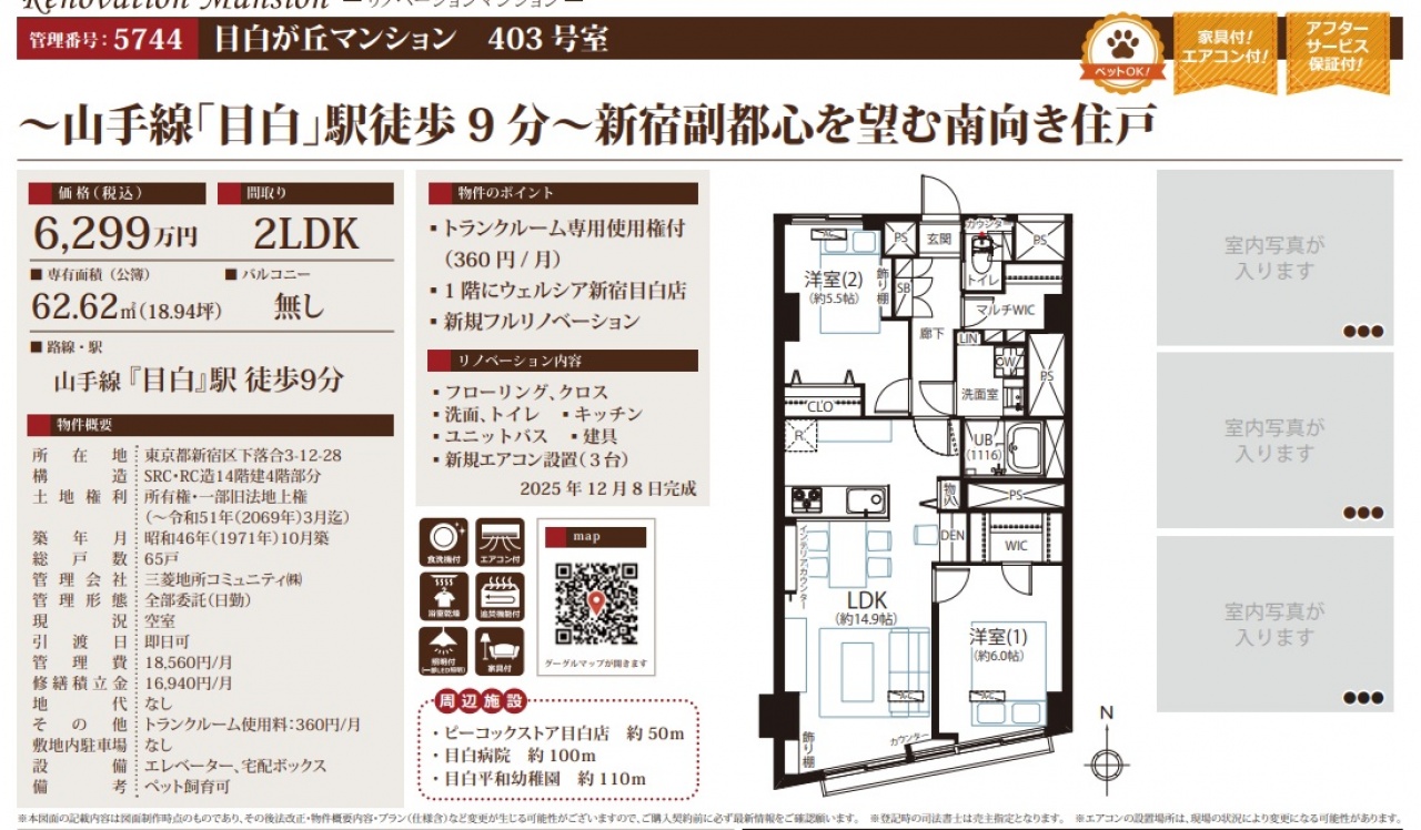 物件情報と現況に差異がある場合、現況を優先します。 掲載物件は売却済み、売却中止、価格変更となる場合がありますので、予めご了承ください。 仲介物件には所定の仲介手数料(消費税含む)が必要です。