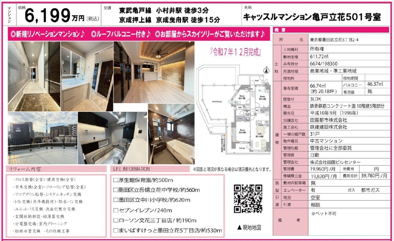 物件情報と現況に差異がある場合、現況を優先します。 掲載物件は売却済み、売却中止、価格変更となる場合がありますので、予めご了承ください。 仲介物件には所定の仲介手数料(消費税含む)が必要です。