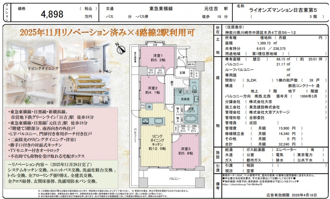 物件情報と現況に差異がある場合、現況を優先します。 掲載物件は売却済み、売却中止、価格変更となる場合がありますので、予めご了承ください。 仲介物件には所定の仲介手数料(消費税含む)が必要です。