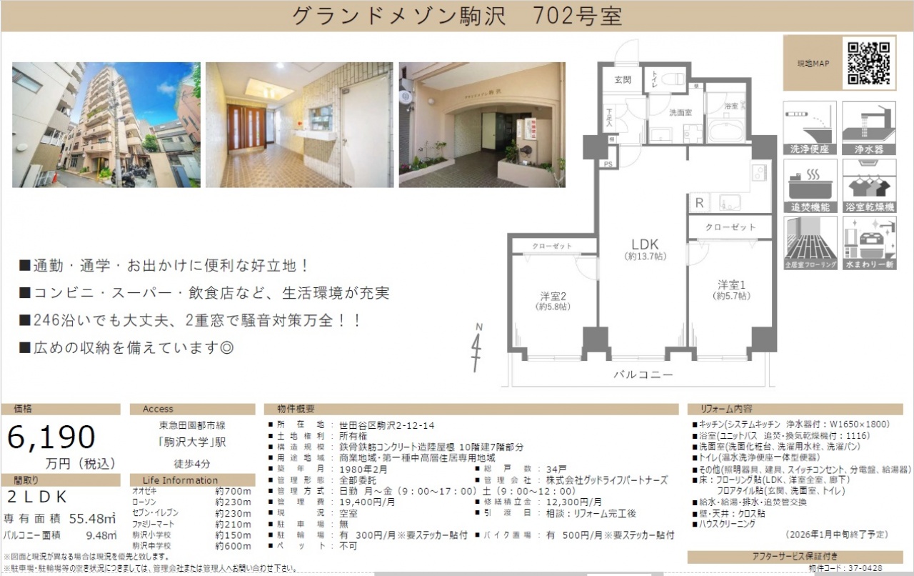 物件情報と現況に差異がある場合、現況を優先します。 掲載物件は売却済み、売却中止、価格変更となる場合がありますので、予めご了承ください。 仲介物件には所定の仲介手数料(消費税含む)が必要です。