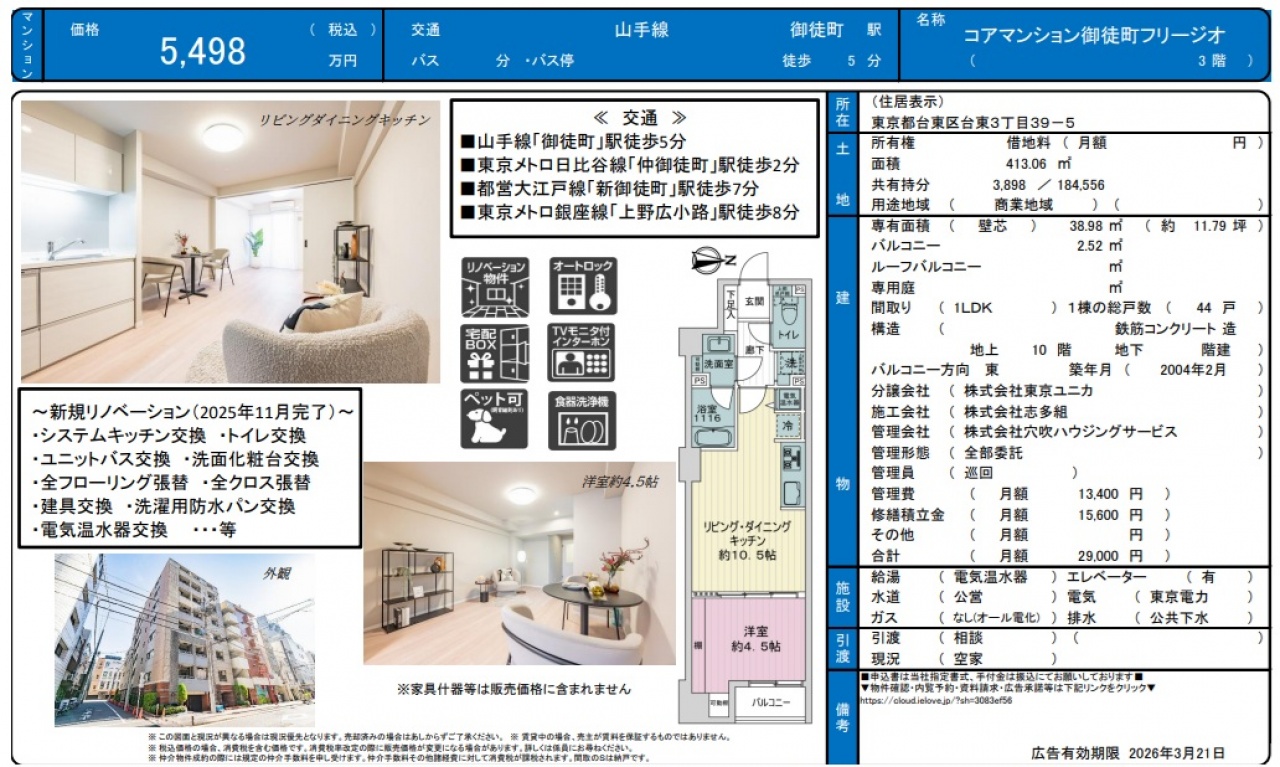 東京都 不動産 > コアマンション御徒町フリージオ