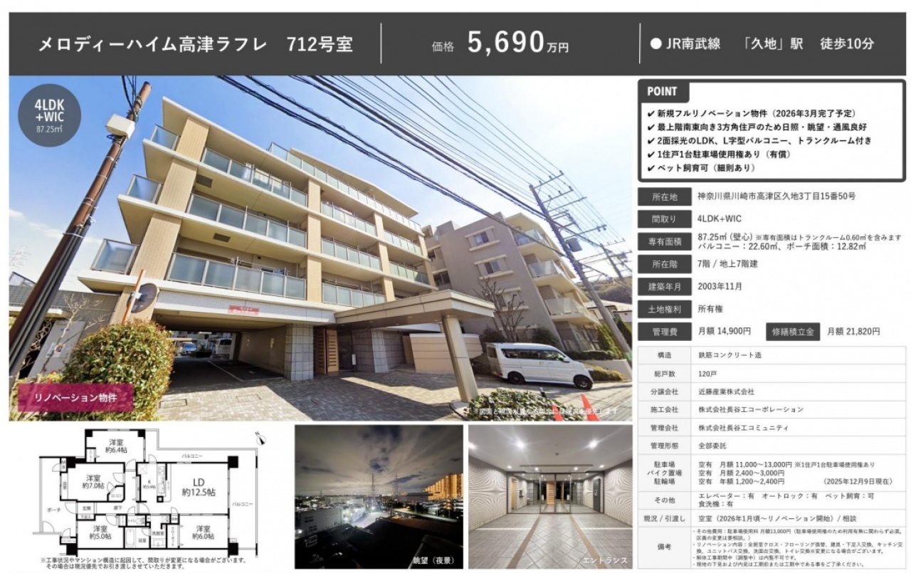 物件情報と現況に差異がある場合、現況を優先します。 掲載物件は売却済み、売却中止、価格変更となる場合がありますので、予めご了承ください。 仲介物件には所定の仲介手数料(消費税含む)が必要です。