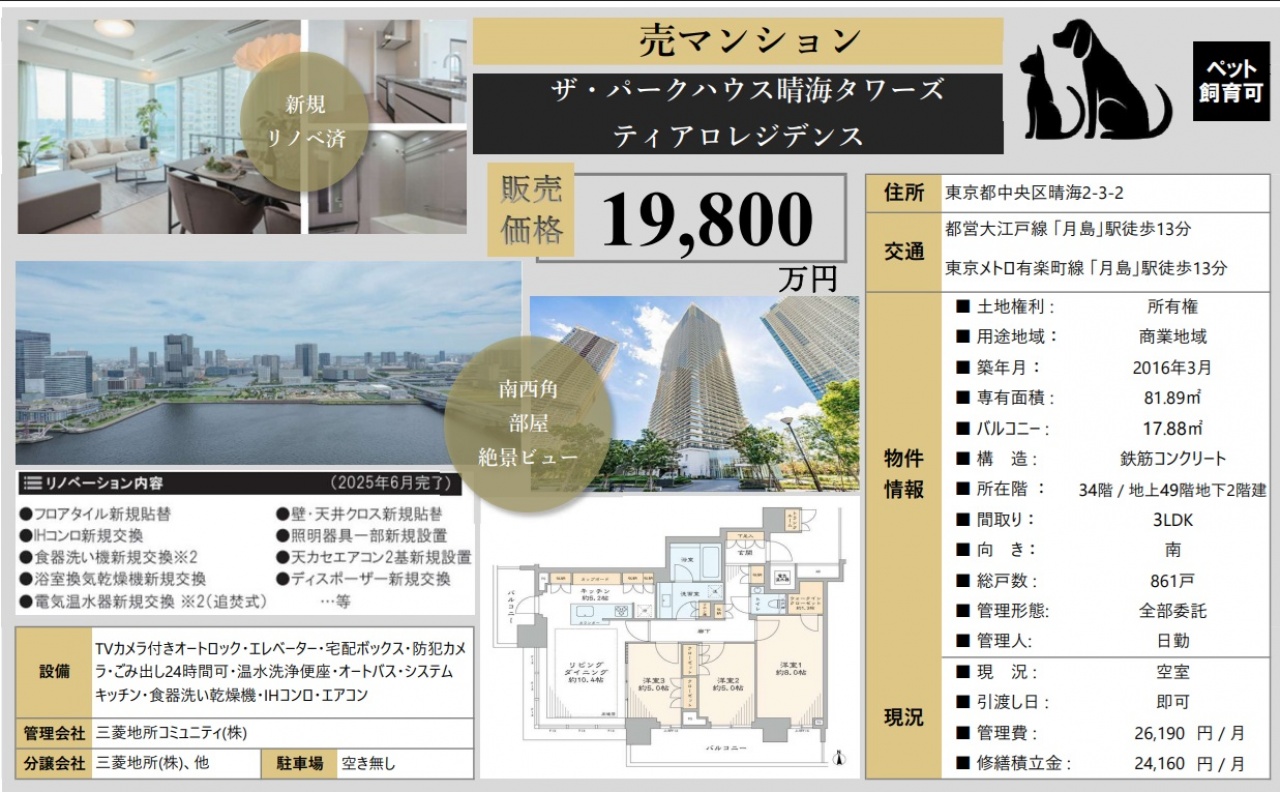 物件情報と現況に差異がある場合、現況を優先します。 掲載物件は売却済み、売却中止、価格変更となる場合がありますので、予めご了承ください。 仲介物件には所定の仲介手数料(消費税含む)が必要です。