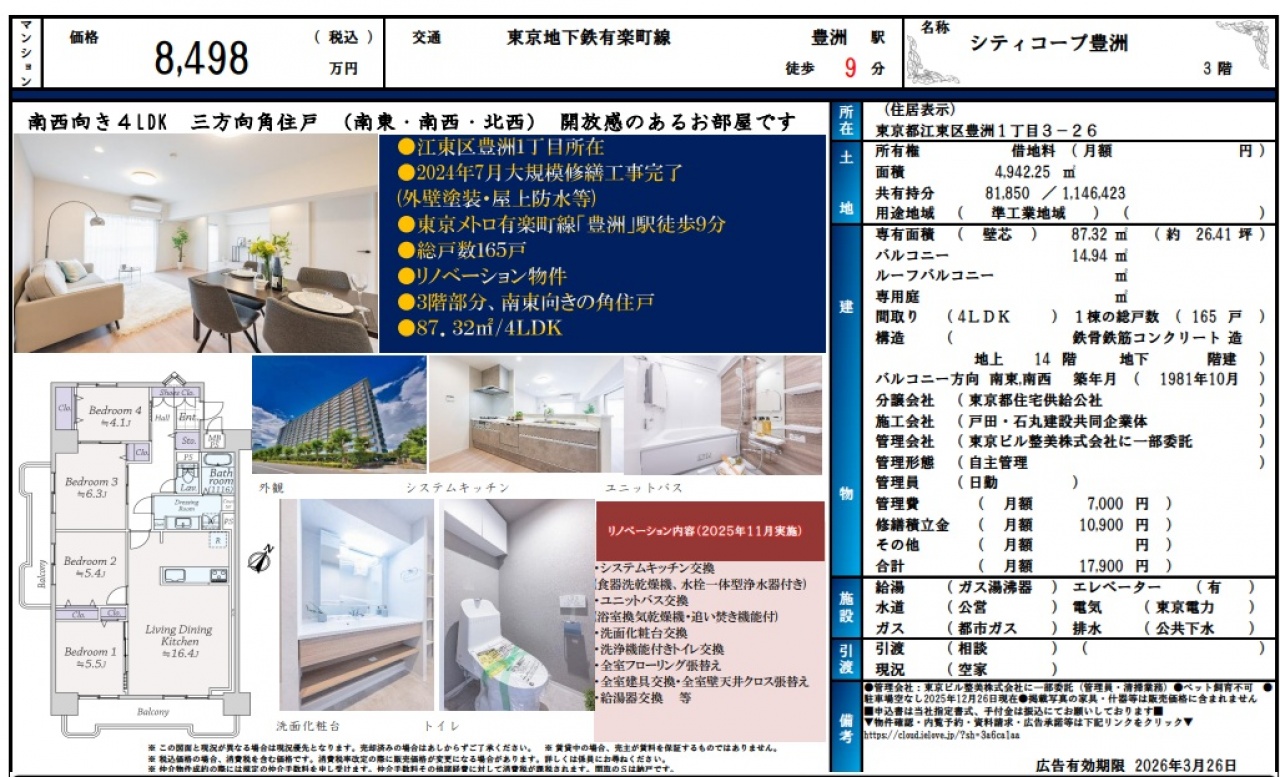 物件情報と現況に差異がある場合、現況を優先します。 掲載物件は売却済み、売却中止、価格変更となる場合がありますので、予めご了承ください。 仲介物件には所定の仲介手数料(消費税含む)が必要です。