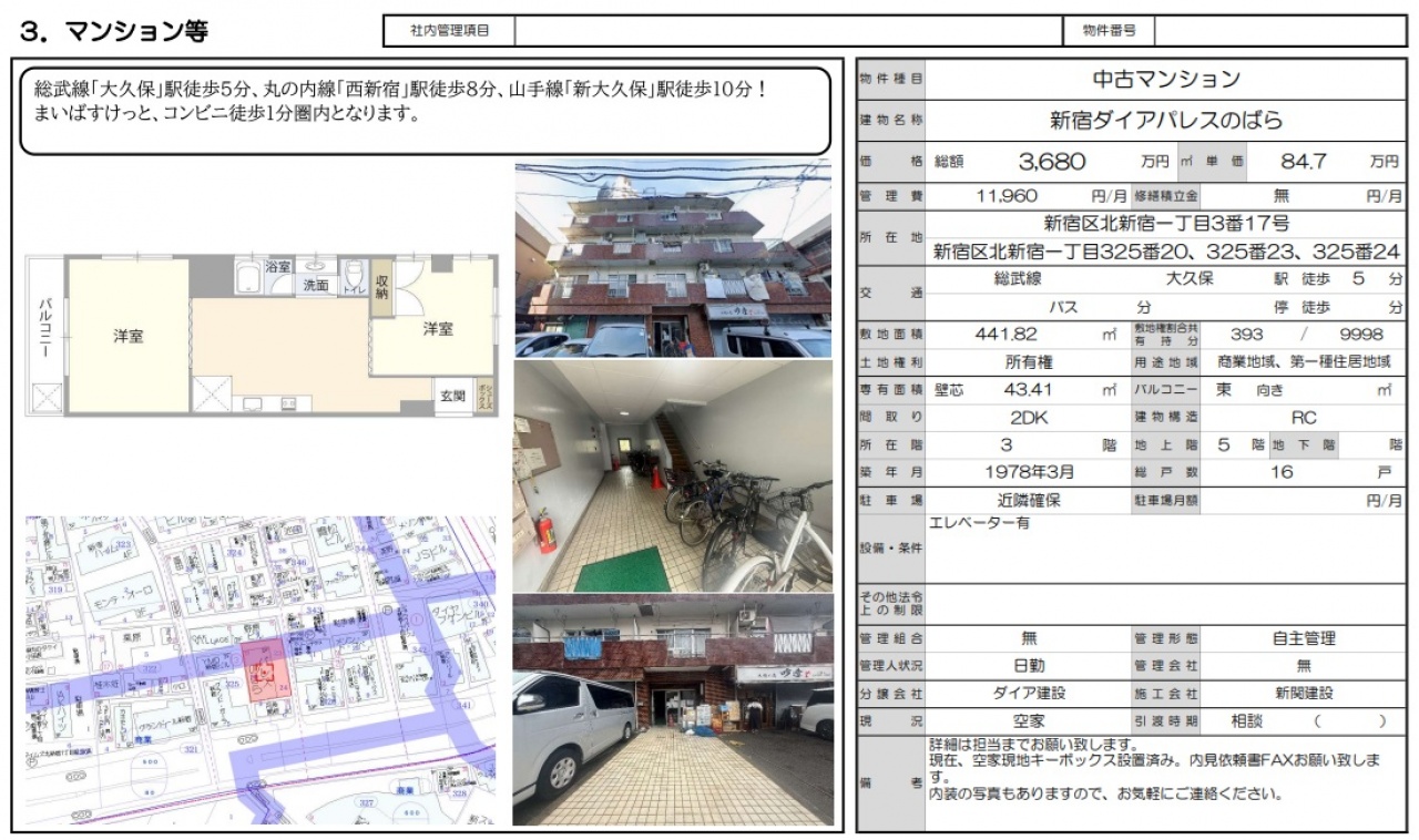 東京都 不動産 > 新宿ダイアパレスのばら