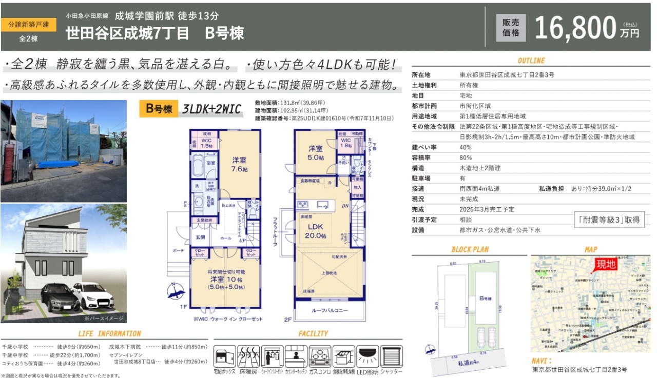 東京都 不動産 > 世田谷区 成城7丁目 新築一戸建て