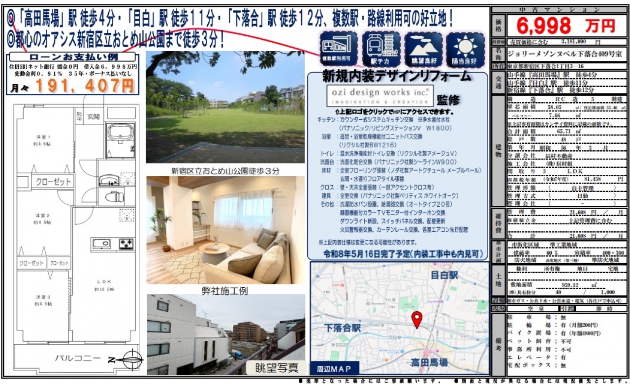 物件情報と現況に差異がある場合、現況を優先します。 掲載物件は売却済み、売却中止、価格変更となる場合がありますので、予めご了承ください。 仲介物件には所定の仲介手数料(消費税含む)が必要です。