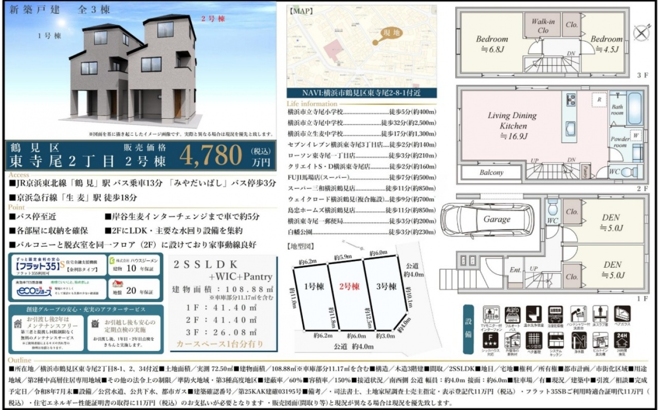 仲介手数料無料の横浜市鶴見区 東寺尾2丁目 新築一戸建て情報は東京法務不動産ナビ