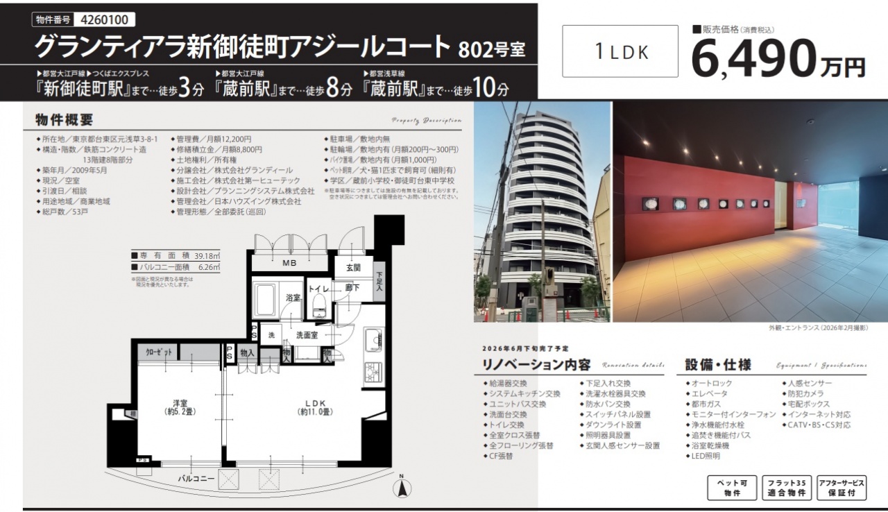 東京都 不動産 > グランティアラ新御徒町アジールコート
